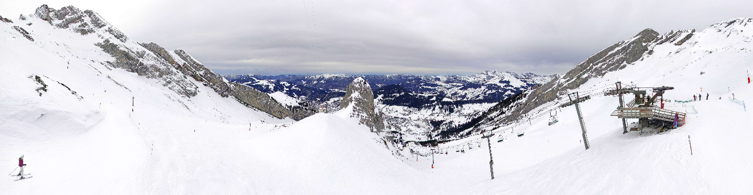 Peu d'évolution. Flux à dominante Sud, accompagné par de nombreux passages nuageux de moyenne et haute altitude, laissant filtrer quelques périodes d'éclaircies par moments (ambiance plus lumineuse que les jours précédents). Toujours des bancs de brouillards en début de matinée en bordure du massif (notamment côté Val de Borne/Arve).